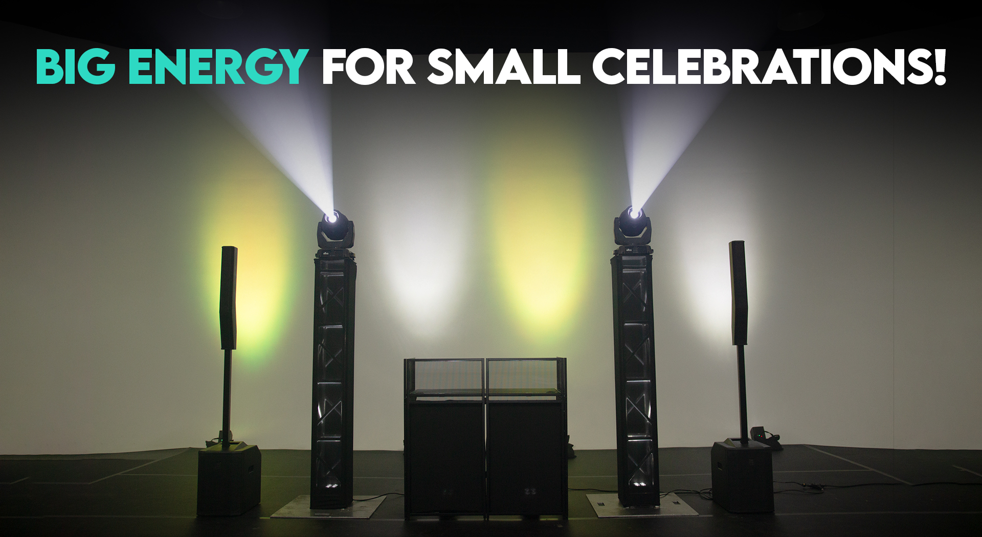 Bring big energy to your smaller gatherings with our Small Social DJ Package, expertly designed for events of 50 guests or fewer. Whether you’re hosting a birthday party, cocktail mixer, networking event, or corporate social, this setup delivers crystal-clear sound, vibrant lighting, and a professional DJ experience — all tailored for smaller venues and intimate spaces.